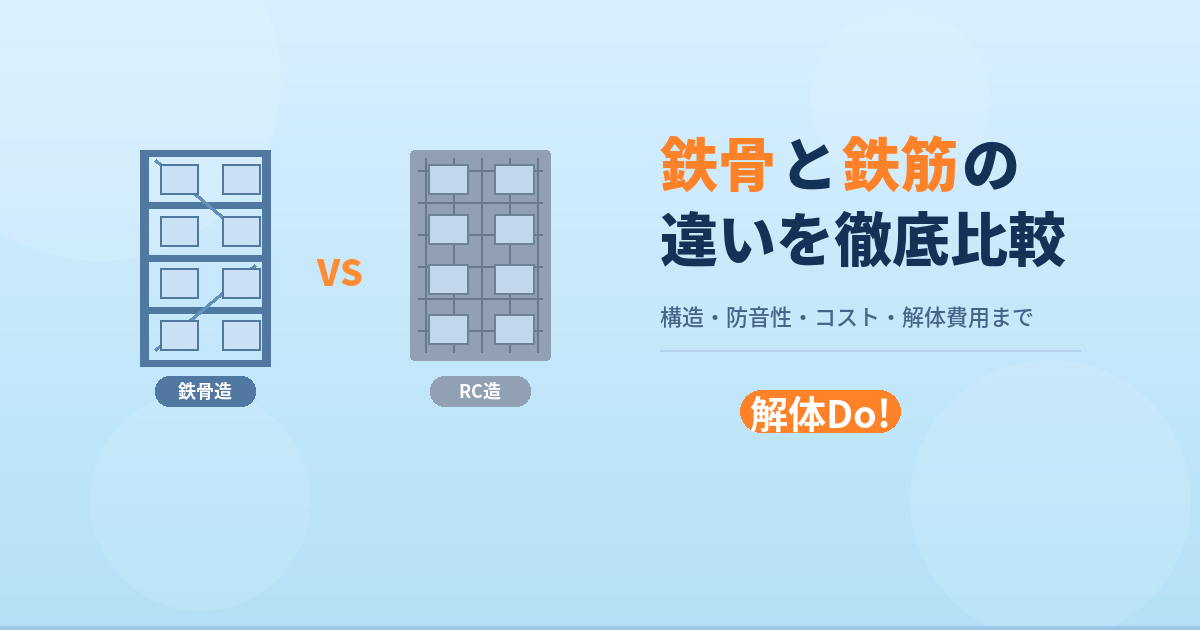 ここからは、解体工事の専門会社である「解体Do!」の視点から、鉄骨造とRC造の違いを解説します。建てるときには意識しなくても、いざ解体となると構造の違いが費用や工期に大きく響いてきます。